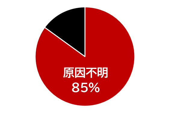 椎間板(ついかんばん)ヘルニアや圧迫骨折、脊柱管狭窄症(せきちゅうかんきょうさくしょう)といった、病院で名前が付けられるものが原因の腰痛は、全体のたった15%程度に過ぎないのです。